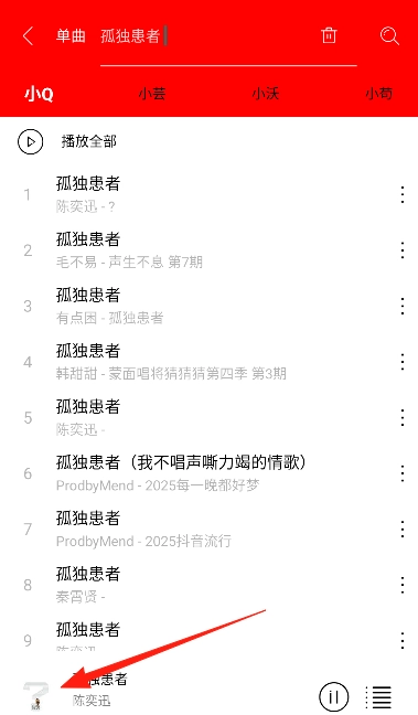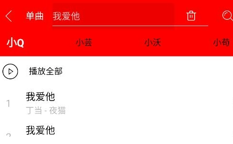 3、输入关键词查找,结果中定位歌曲播放。