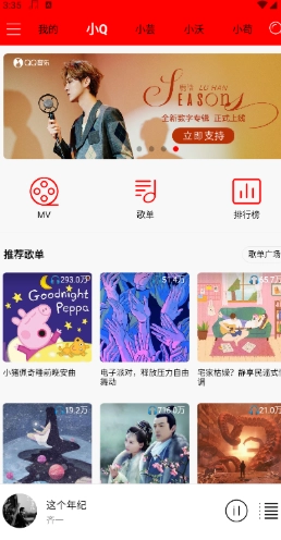 1、启动轻听音乐进入首页,浏览推荐歌曲或热门榜单。