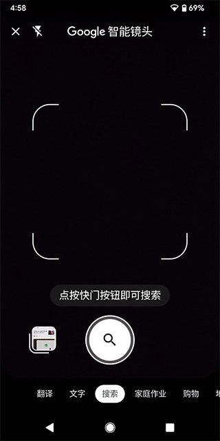 2、在谷歌智能摄像头中,拍摄目标内容或上传相册图片进行识别