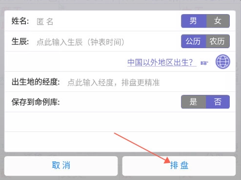 2、填写姓名、性别、精确生辰及出生地经纬度