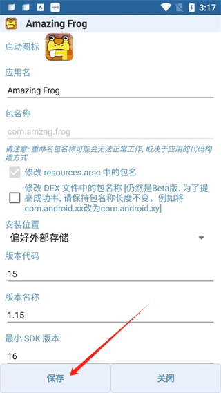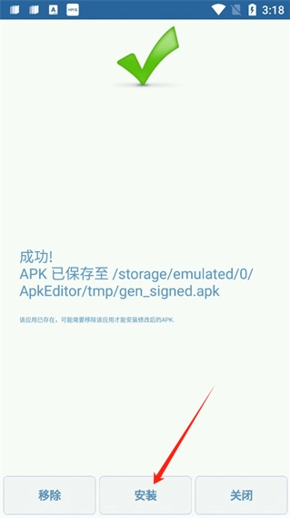根据路径找到修改后的安装包,点击安装。注意:签名错误可能导致安装失败。