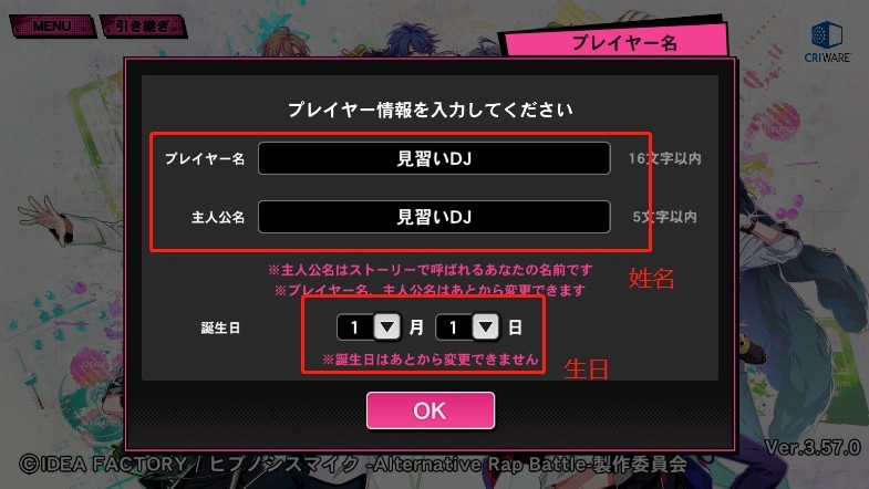 2. 输入玩家名称及生日信息,二次确认完成注册