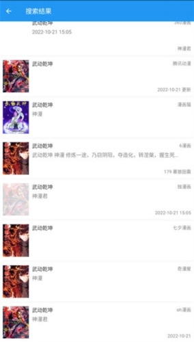 搜索结果显示平铺列表,源站信息清晰标注右上角。