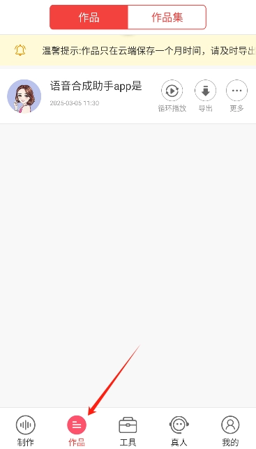 1. 合成好一段文字后,声音文件会自动保存到【作品】列表里。