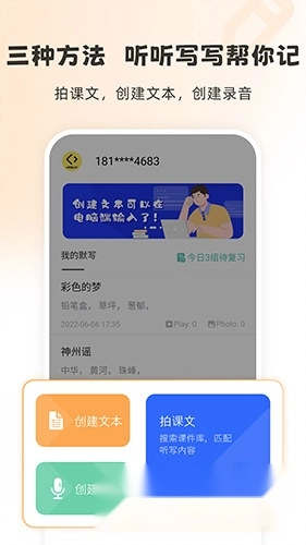 识别荧光笔划选内容,直接生成音频支持聆听与默写