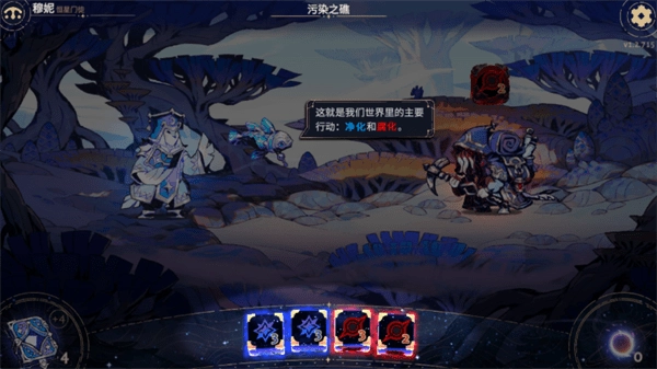 6、敌人腐化条初始满值,净化至零才能获胜;玩家腐化条初始净化状态,满腐化会失去一颗心,全部失去则游戏失败。