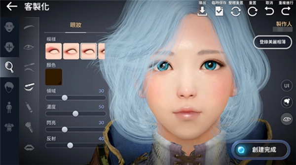 专家模式开放三维参数调节,支持对纵幅、横幅、深度进行毫米级控制。女性角色额外提供眼妆、唇色等彩妆选项,虹膜颜色与睫毛形态均可自由定义。