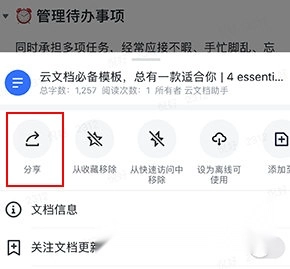 4、选择“分享”发送他人查看修改。