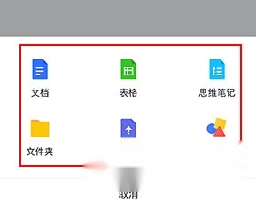 2、选择创建类型如文档或表格。