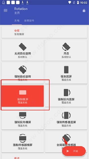 2. 主界面选择"强制横屏"选项
