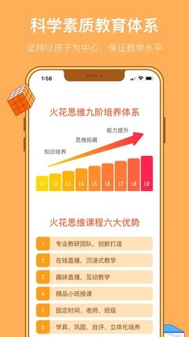 火花课堂六步法确保每节课有趣且激发兴趣;名师专家团队提供优质资源;科学学习闭环涵盖多个级别和模块;服务承诺保障无忧学习。