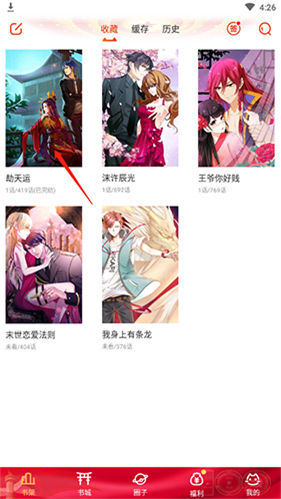 1、启动软件,点击书架,挑选自己喜欢的漫画。