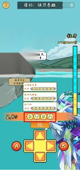 3、进入拉扯环节,持续点击【拉】消耗鱼儿体力。