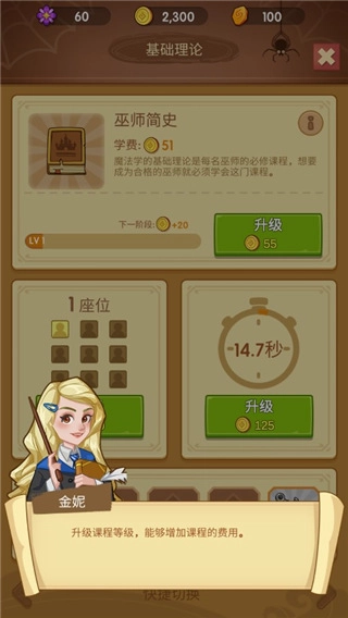放置魔法学院游戏玩法简单,在麻瓜训练,宿舍管理和吸引精英巫师方面,采用不同的增长策略来明智地分配您的资金,从而为您的魔术学校声名bring起。在这里你有不同的任务要处理。任务完成后,将有机会扩展自己的领地,例如水乡,那里有湍急的河流,学生将不会受到外界的干扰。你也可以升级魔法树以获得果实,可用于增加巫师之星等级。