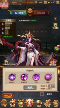 首先,《双城之战——妖王噩兆》的目标是让玩家争夺参加双城之战的资格,只有本服务器的第一名才能获得参赛机会。玩家需要通过三套武将阵容对Boss卑弥呼发起挑战,最终根据各军团所有成员造成的总伤害进行排名,排名第一的军团将赢得参与双城之战的资格。