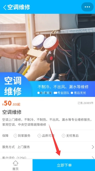 3、选择所需服务后查看详情,确认价格及服务范围,点击立即下单完成预约。
