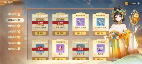 2、通用商店全部需要金券购买,可以购买凌云晶和三昧赤金,凌云晶是角色升至绝世需要的进阶道具,三昧赤金是装备锻造到彩色需要的进阶道具。